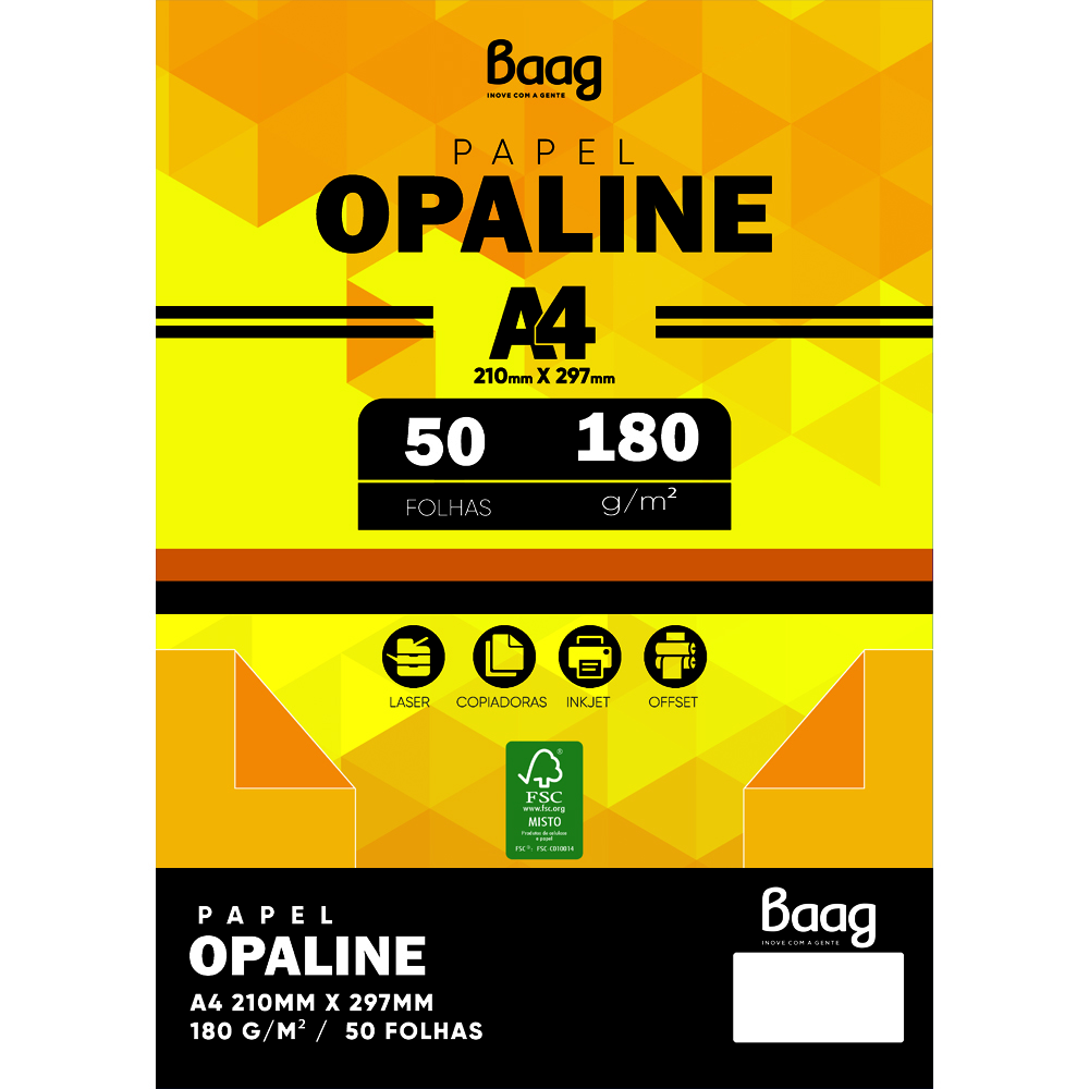 PAPEL A4 OPALINE BRANCO 180 G/M² – 50 FLS