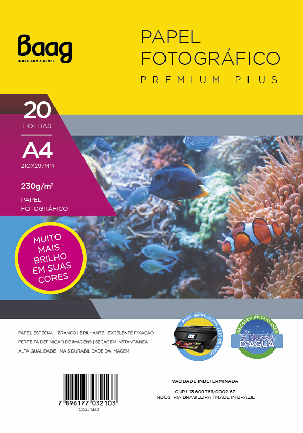 PAPEL FOTOGRÁFICO PREMIUM 230G – PACOTE C/ 20 FOLHAS