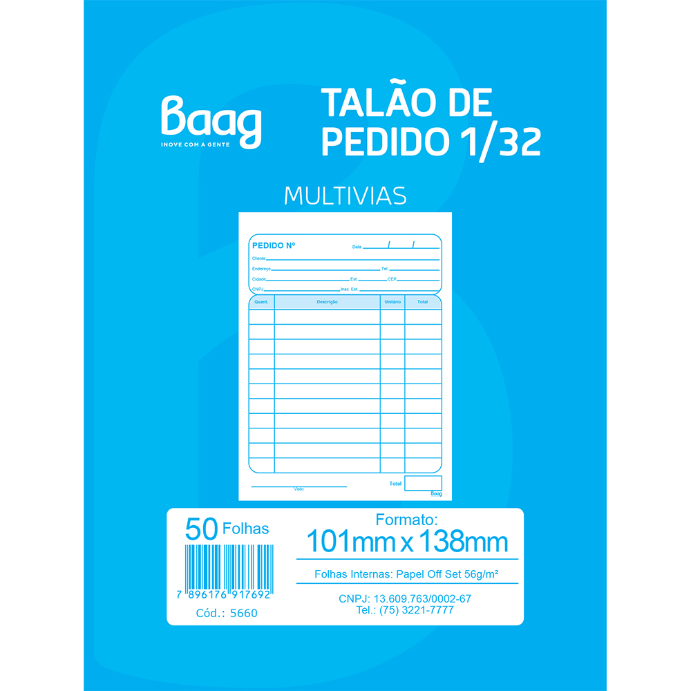 Miolo Produto certificado: FSC® Tipo de impresso: Formato: 101 x 138 mm, Número de folhas:50 folhas, Pacote: 10 unidades, Caixa: 80 unidades