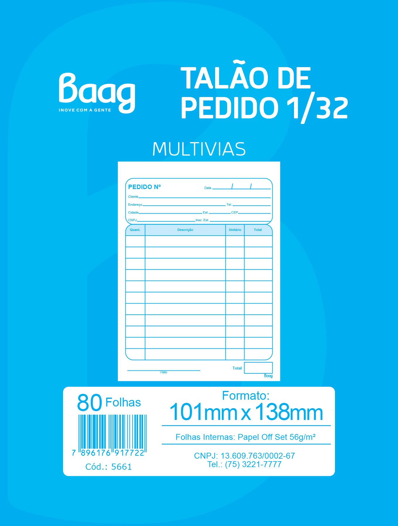 Miolo Produto certificado: FSC® Tipo de impresso: Formato: 101 x 138 mm, Número de folhas:50 folhas, Pacote: 10 unidades, Caixa: 40 unidades